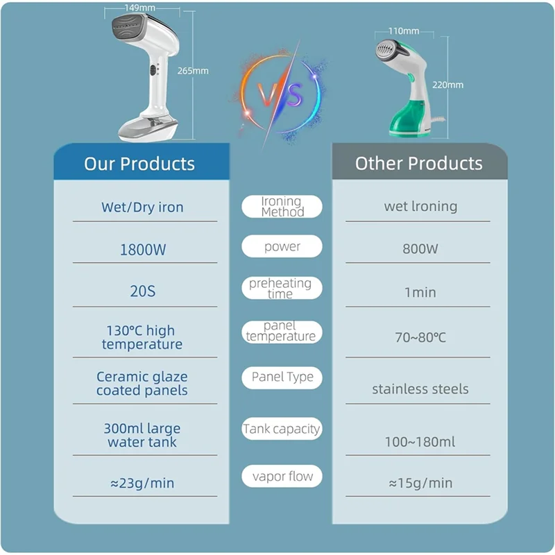 Funcionalidade versátil: Este vaporizador de roupas possui um tanque de água destacável de 300 ml para sessões prolongadas de vapor e suporta engomar a seco e a vapor. Seu design antivazamento de 360° permite a operação de qualquer ângulo sem risco de derramamento de água.