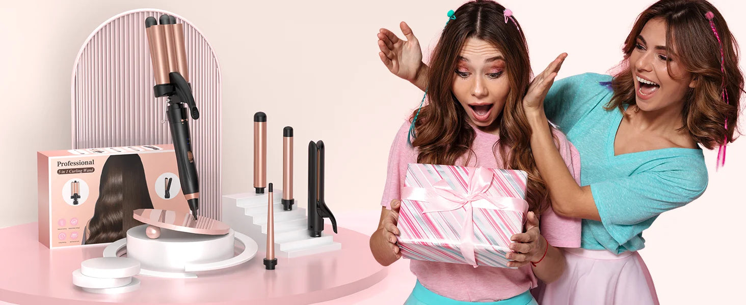 BESTOPE PRO 5 in 1 Wand Curling Iron-Curling Wand Set with Hair Straightener, 3 Barrels Hair Crimper Iron, 3 Ceramic Curling Iro